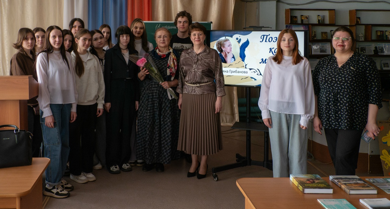 В гости к студентам молодёжная модельная библиотека «25 квартал» пригласила Татьяну Грибанову — поэта и прозаика, члена Союза писателей России, лауреата многочисленных литературных конкурсов. Писательница поделилась размышлениями о творчестве и современности, затронула тему судьбы русской деревни и России в целом. Особое место в программе заняли стихи о деревне — проникнутые любовью к родной земле, её природе, традициям и обычаям. Каждое слово будто прикасалось к душе, напоминая о корнях, о том, что делает нас теми, кто мы есть.