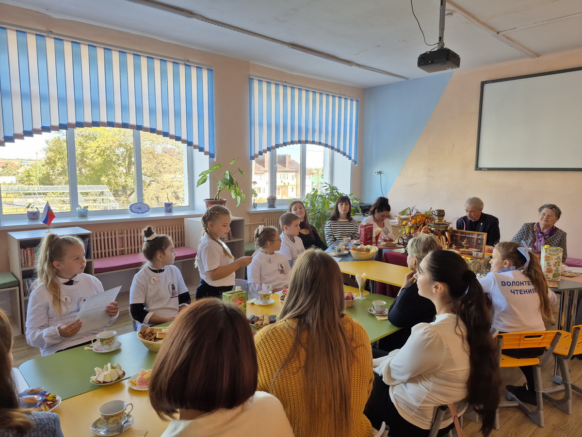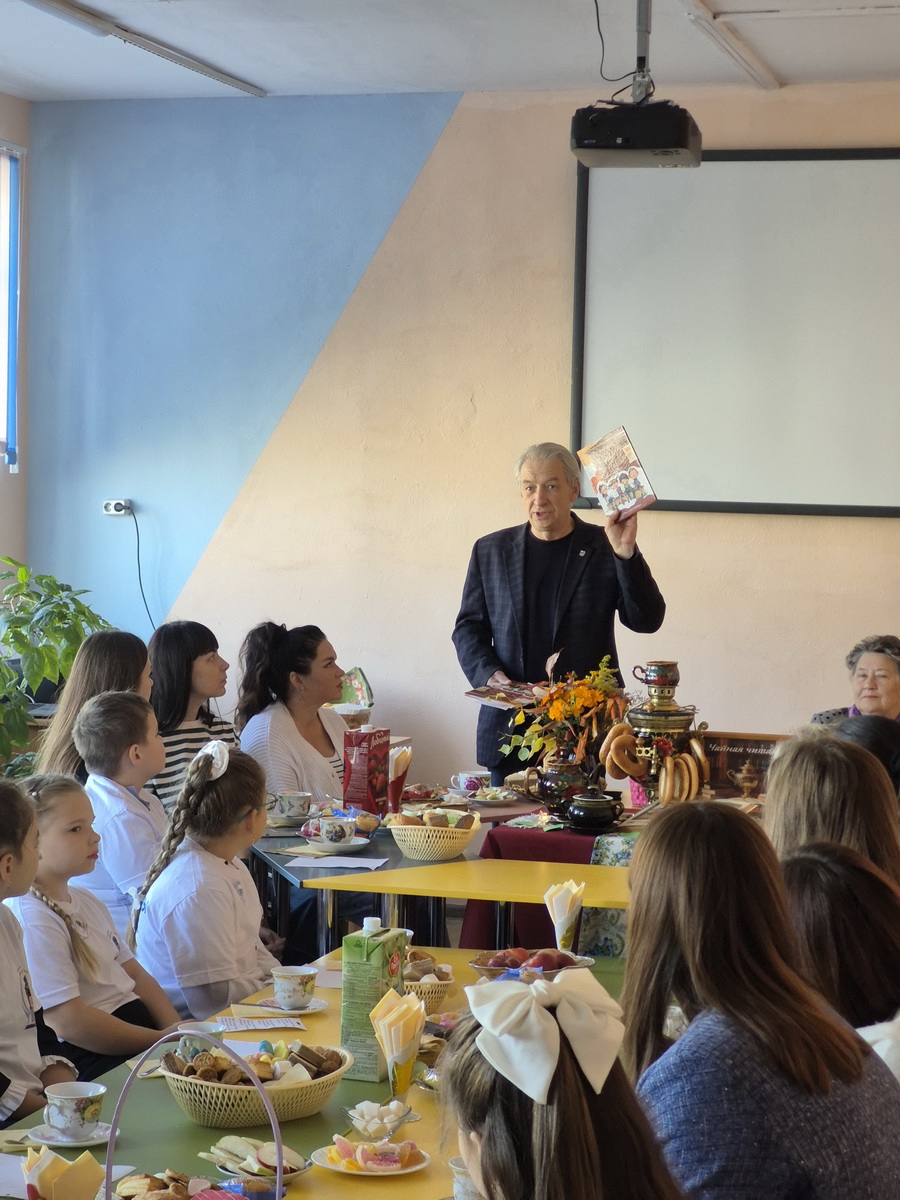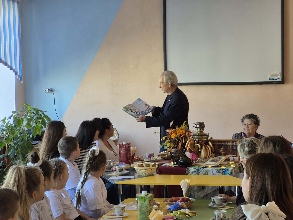 В школьной библиотеке за великолепным чайным столом ребята и их родители познакомились с книгой детских стихотворений Андрея Фролова «Мы играли в догонялки», поговорили о поэзии и пользе чтения. В благодарность писателю школьники прочитали его же стихотворения – как для детей, так и для взрослых. А книга «Мы играли в догонялки» теперь есть в школьной библиотеке!