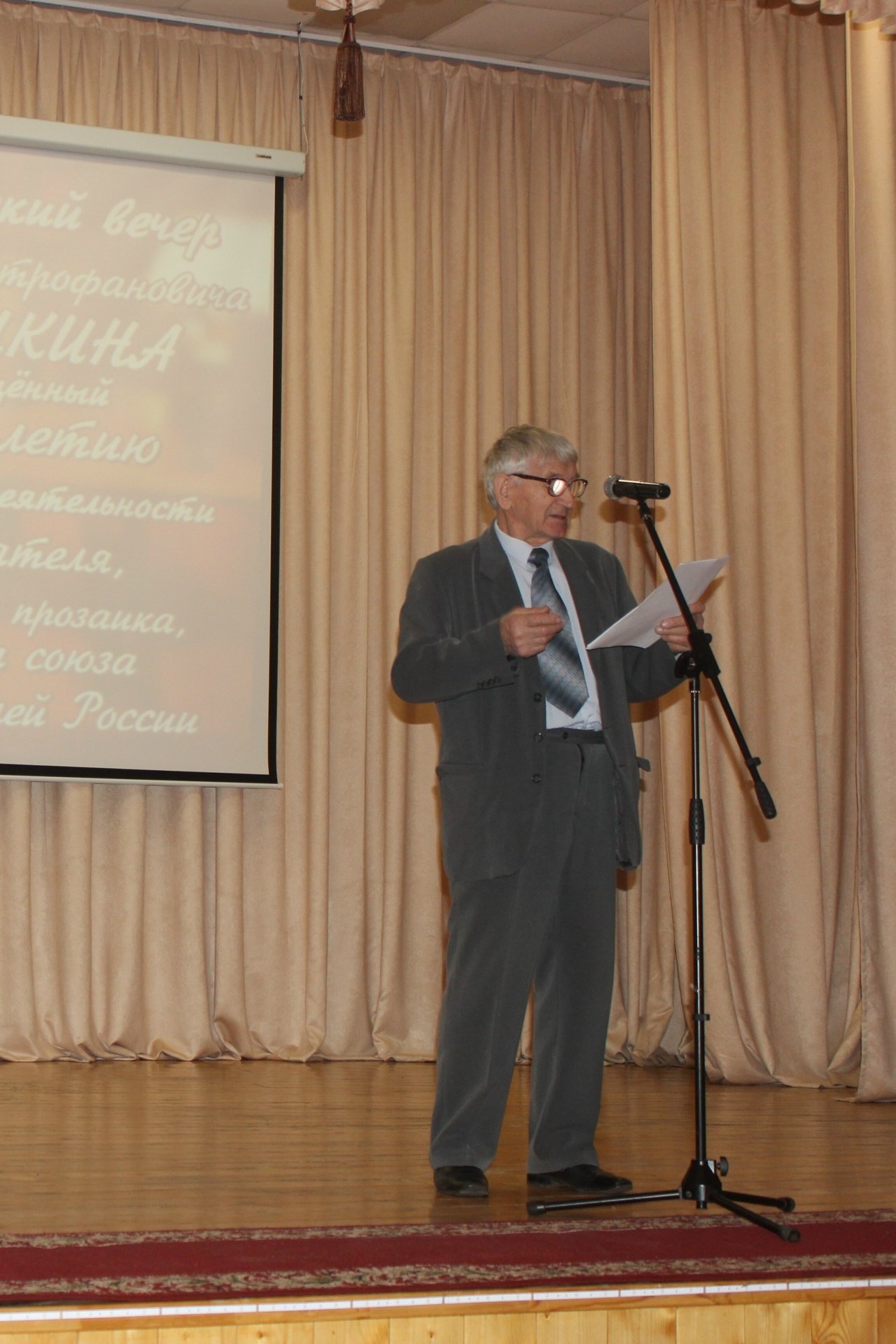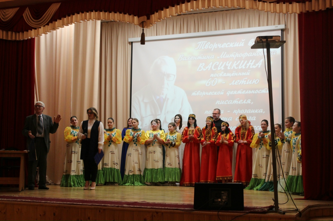 27 ноября в Доме культуры Глазуновского района состоялся творческий вечер литератора-земляка, члена Союза писателей России, заслуженного работника культуры России Валентина Васичкина. Встреча была посвящена 60-летию его творческой деятельности.
