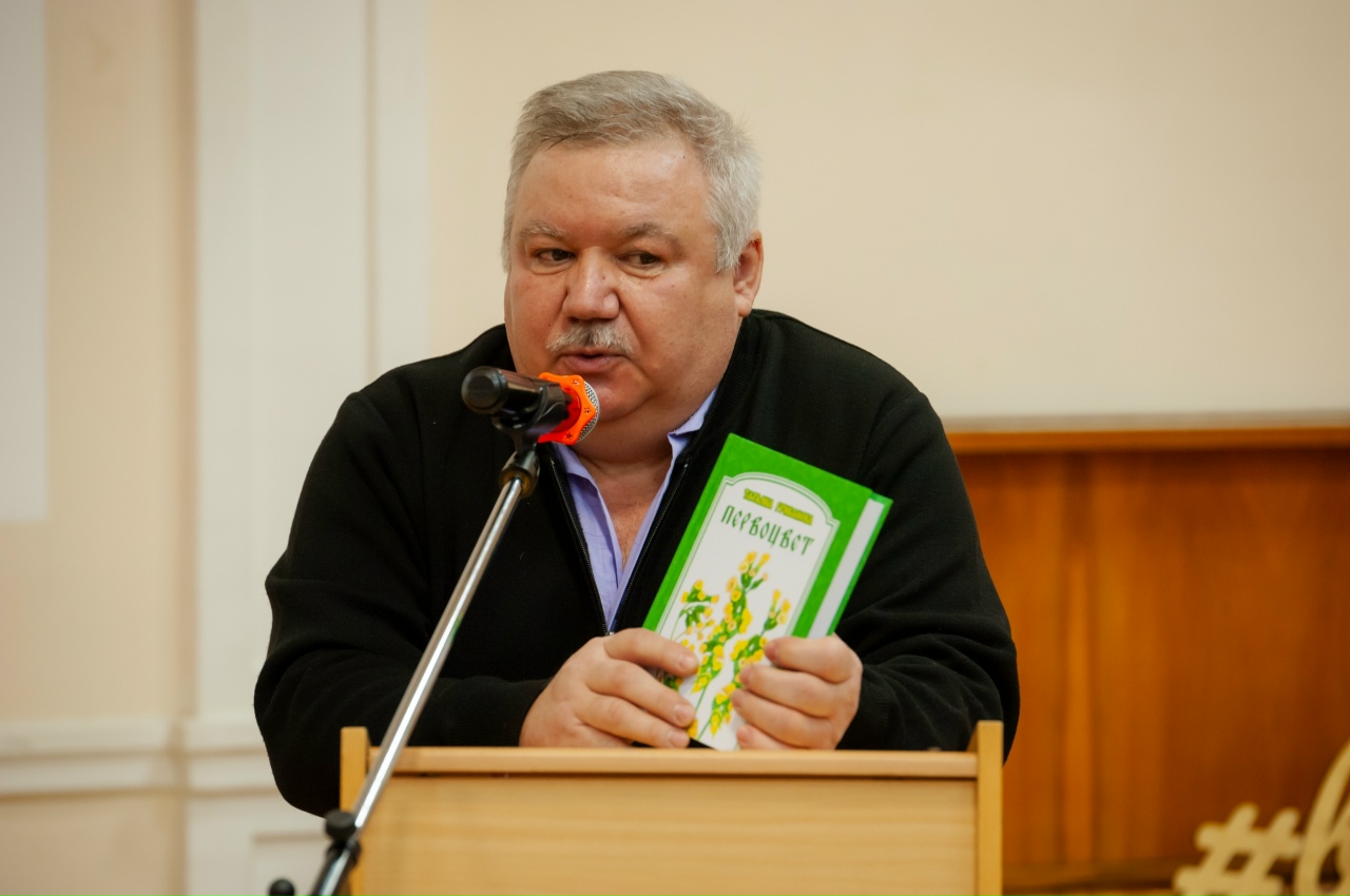 Директор издательства «Картуш» Сергей Ветчинников представил новую книгу Татьяны Грибановой «Первоцвет». Эта книга – для детей, для семейного чтения.