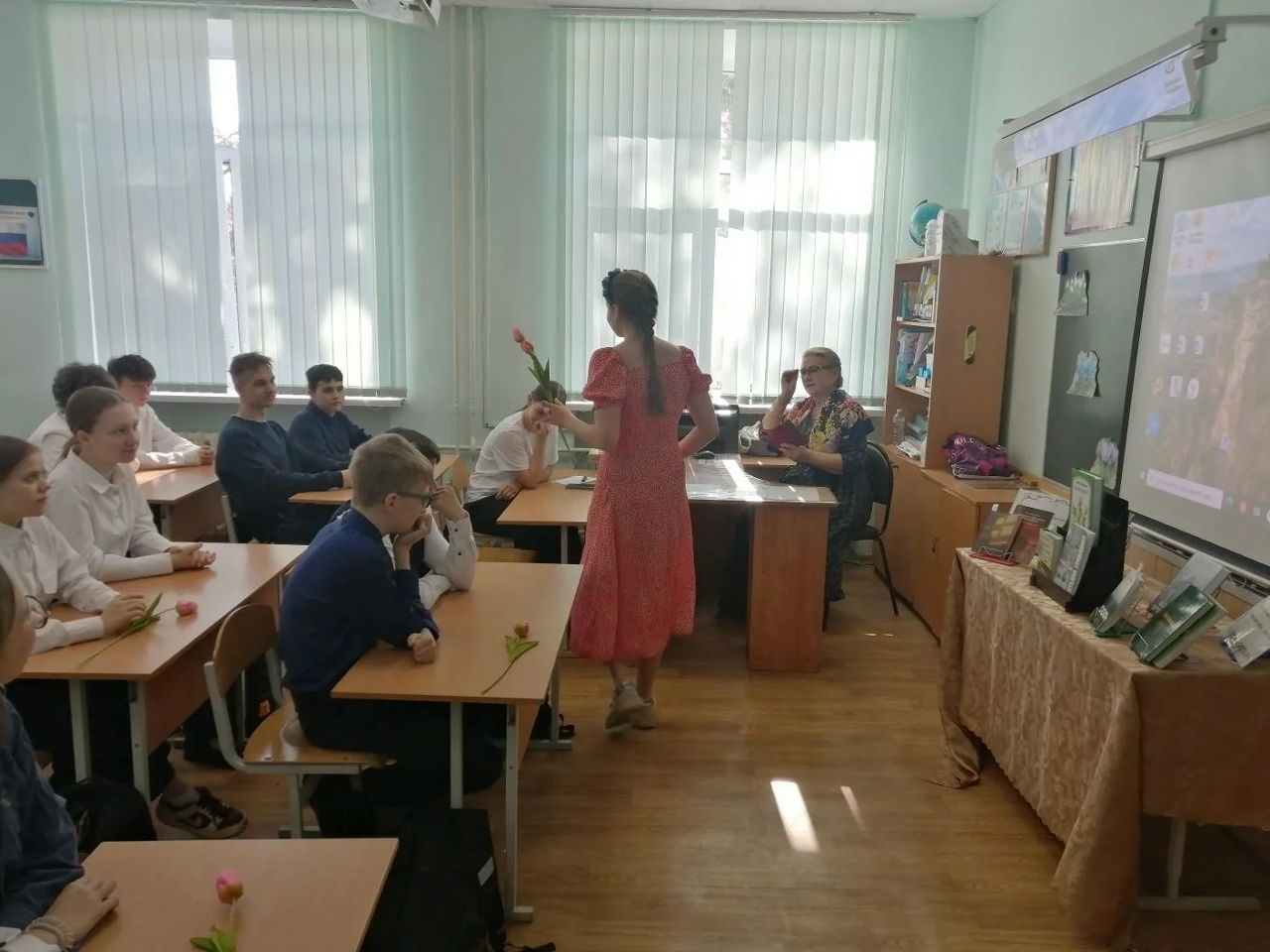 В тот же день в рамках Недели детской и юношеской книги в Жилинской средней общеобразовательной школе прошла презентация новой книги Татьяны Грибановой для семейного чтения «Первоцвет». Школьники не просто слушали — они читали отрывки, перевоплощаясь в героев книги. Атмосфера получилась уютной, как бабушкин каравай из книги писательницы.