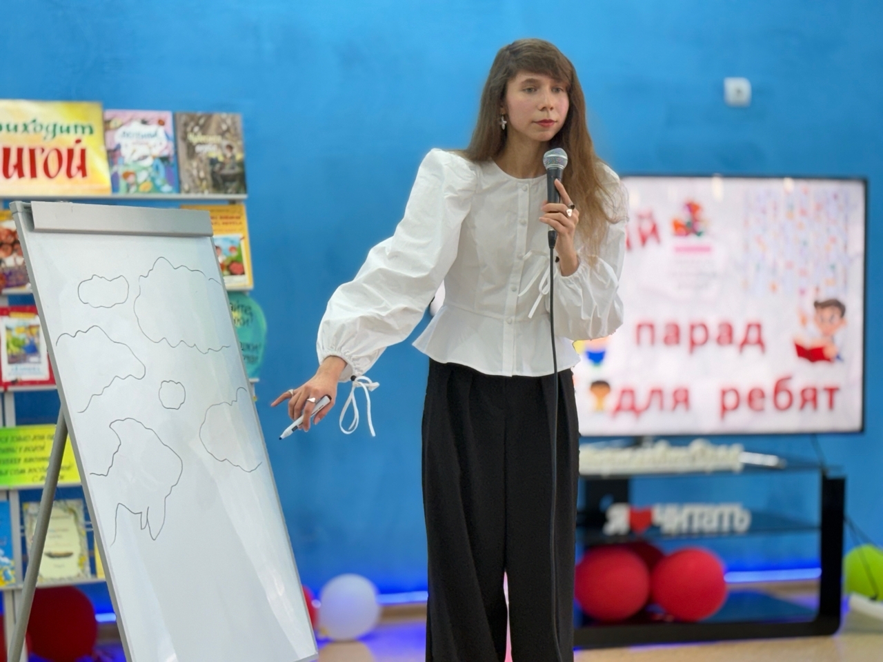 А что за праздник в детской библиотеке без писателей? Орловские авторы, члены Союза писателей России Светлана Голубева и Елена Машукова рассказали маленьким читателям, что о народе многое можно узнать из его сказок, которые учат самым важным вещам. Художник-иллюстратор Анастасия Олеговна Оксенюк поделилась с детьми секретами создания иллюстраций.